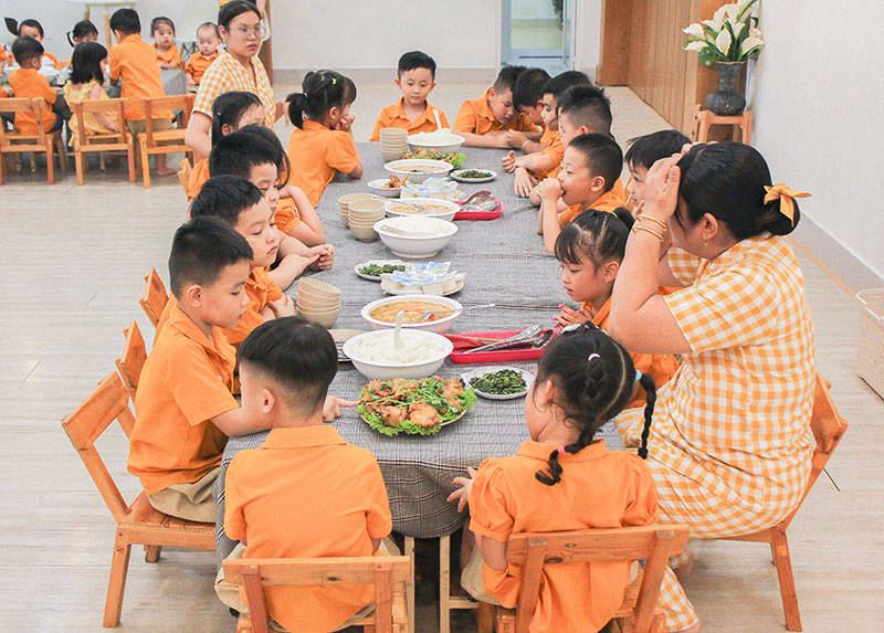 Khẩu phần ăn dinh dưỡng vượt chuẩn – Theo quy định, trẻ cần đạt 60% nhu cầu dinh dưỡng trong bữa ăn tại trường. Nhưng tại Trứng Academy, bé được bổ sung lên đến 75-80%, đảm bảo nguồn năng lượng dồi dào cho cả ngày vui chơi và học tập!